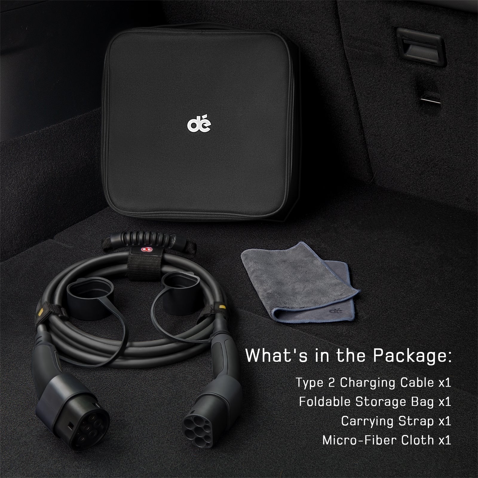 - 【Sac de transport et sangle de câble inclus】Un sac pliable pour ranger votre câble EV dans le coffre. Conception compacte et pliable, ne prend pas trop de place. Le fond antidérapant garantit qu'il ne bouge pas facilement pendant la conduite. Une sangle de transport pour la gestion de votre câble de chargement de voiture, le transport ou l'accrochage au mur. Un chiffon de nettoyage maintient le câble de charge de type 2 propre.