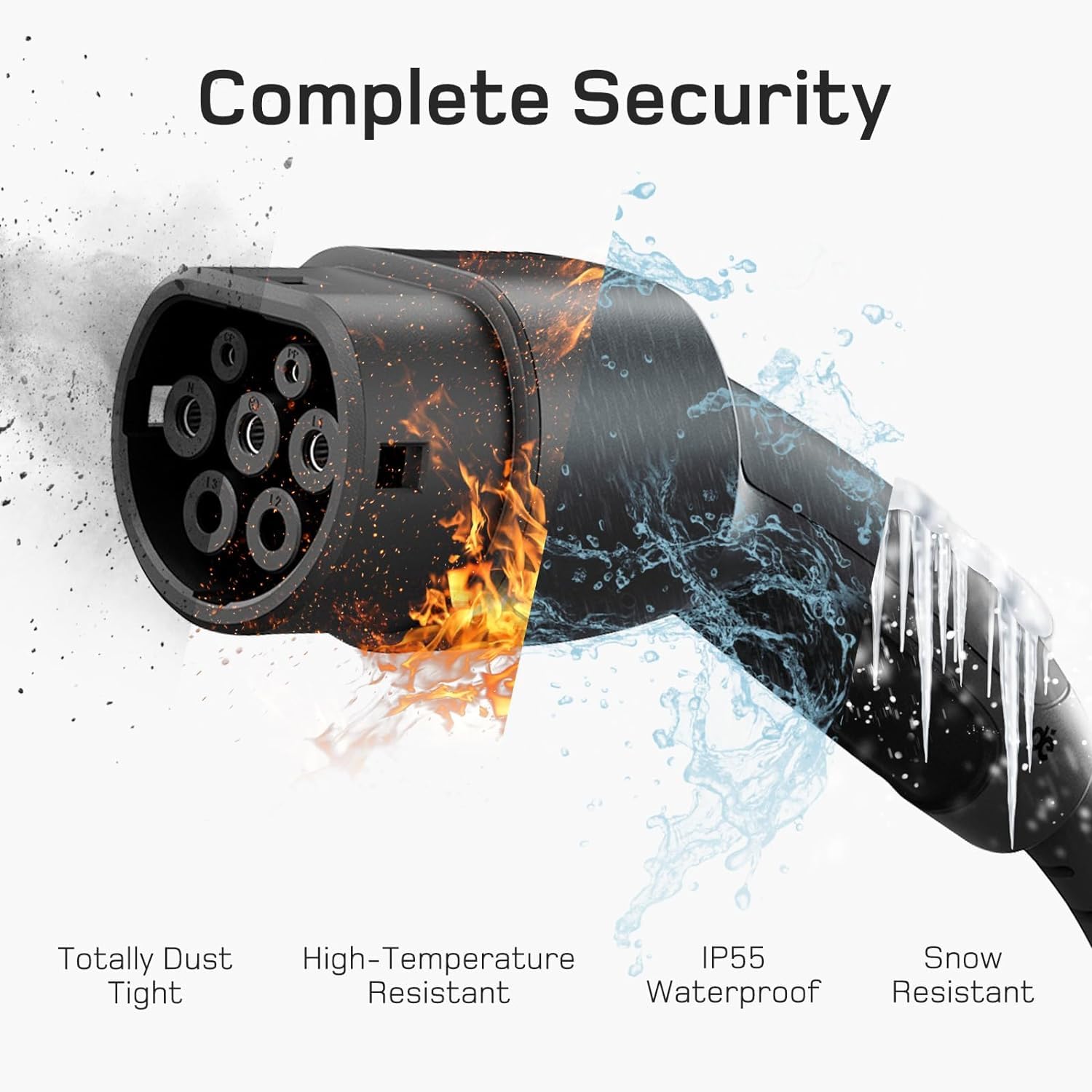 - 【Câble de chargement de voiture de qualité fiable】Câble de chargeur EV portable certifié CE de type 2, étanche - IP55. Fabriqués en matériau TPU de haute qualité, durable et flexible, les deux étuis ont des bouchons en caoutchouc. Une étanchéité solide est efficace contre la pluie et l’eau.