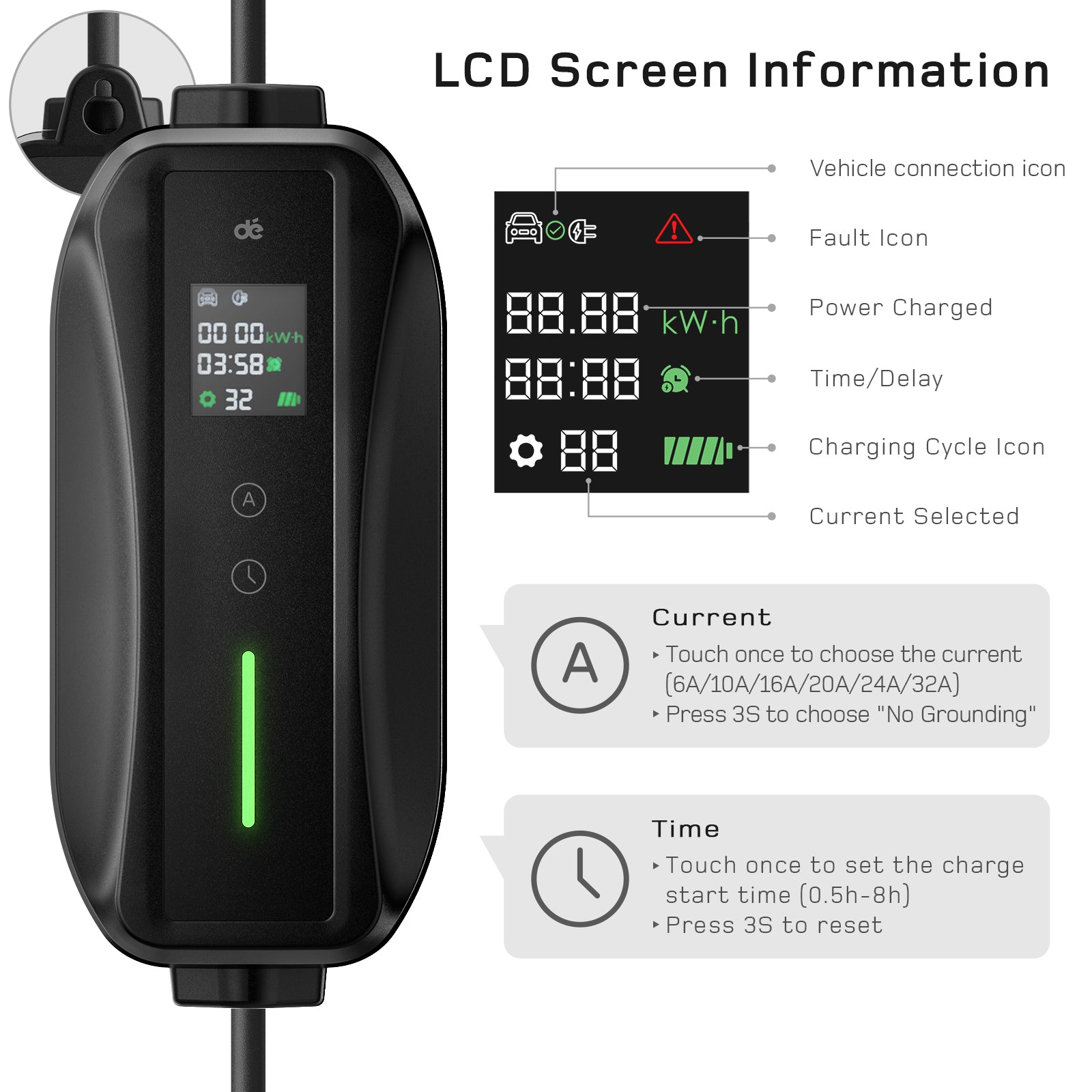 - 【Safe and reliable】Equipped with vehicle communication and security protection. Tested to meet CE, RoHS and TUV certification requirements and rated IP66 to provide strong water and dust resistance for outdoor and rainy day use. Protection against over/under voltage, overload, short circuit, leakage, ground fault, over temperature and lightning strike. The cable is made of TPU material